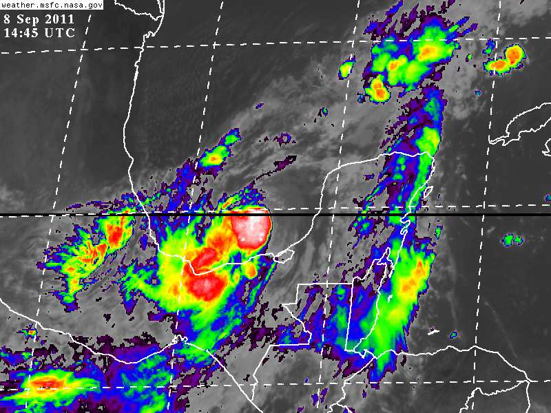 Imágenes de Satélite y reportes de autoridades Municipales hacen evidentes precipitaciones en el Oriente y Centro del Estado de Yucatán.