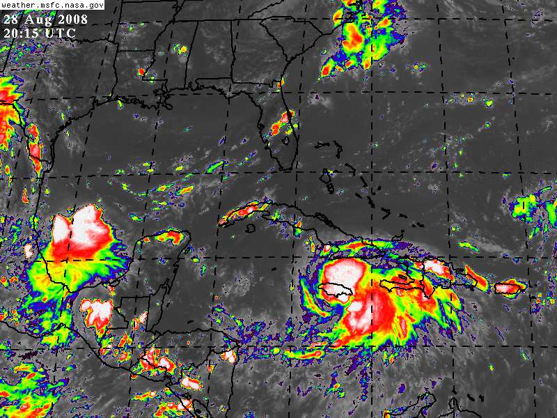 Debido a la interacción con Jamaica, se espera que Gustav se intensifique nuevamente a huracán el día de mañana al desplazarse nuevamente sobre aguas del Caribe.