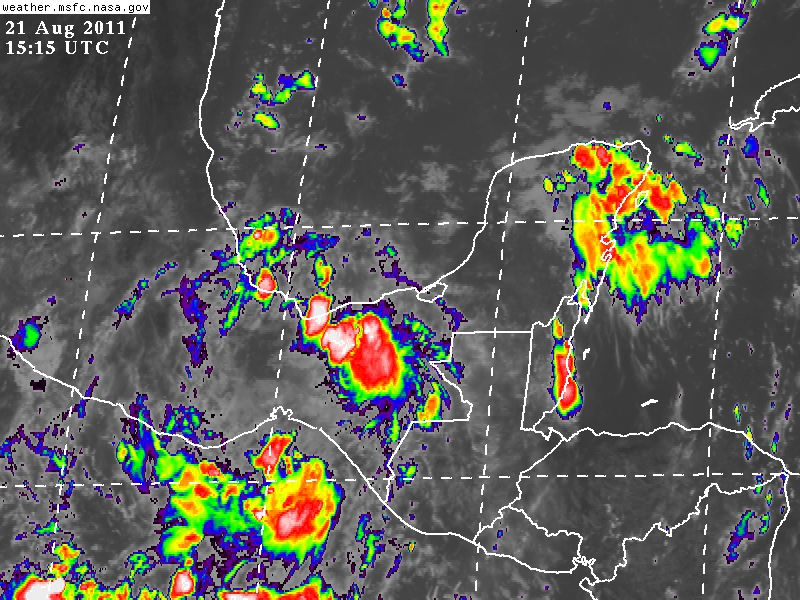 Imágenes de Satélite hacen evidentes precipitaciones en el Oriente y Centro de nuestra entidad en asociación con la Depresión Tropical Harvey.