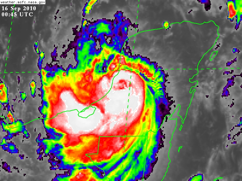 Se espera que Karl pierda intensidad durante las próximas horas, debido a su desplazamiento sobre tierra y emerja sobre el Golfo de México posiblemente como una Depresión Tropical.