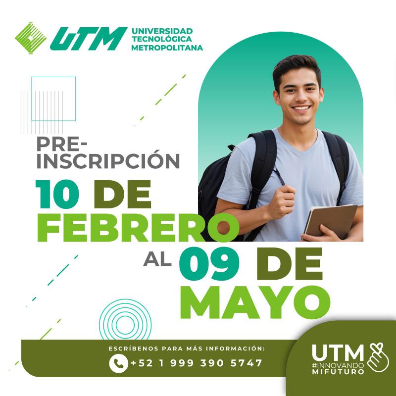 Con una oferta de 17 programas educativos distribuidos en sus tres divisiones: Industrial, Administración y Tecnologías de la Información y Comunicación —además de la División de Innovación y Desarrollo Estratégico— la Universidad Tecnológica Metropolitana (UTM) está lista para recibir a las y los estudiantes de nuevo ingreso, quienes tienen hasta el 09 de mayo para registrarse en el proceso de admisión.