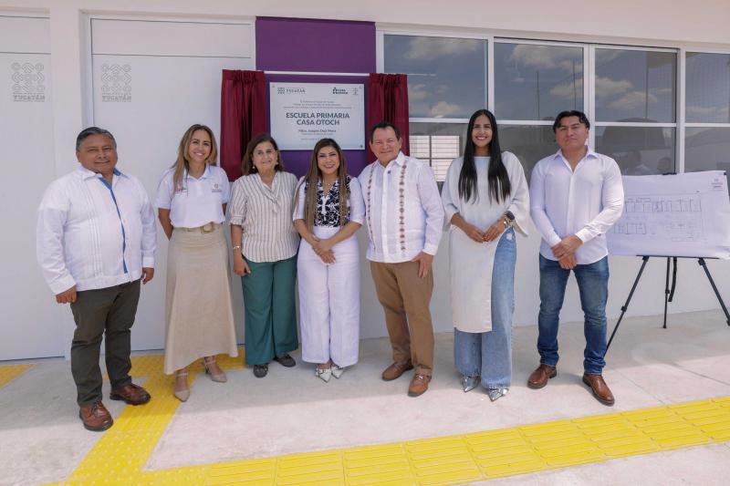 El Gobernador Joaquín Díaz Mena realizó la entrega oficial de los trabajos de rehabilitación y ampliación de la Escuela Primaria Casa Otoch, que consistieron en la construcción de dos nuevas aulas didácticas, andadores accesibles y mejoras integrales en la obra exterior.