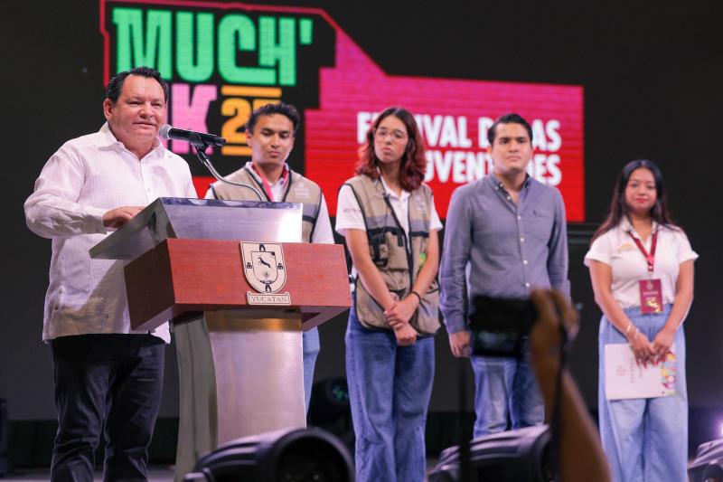 Como un espacio que reúne la cultura, el arte y la creatividad, el Gobernador Joaquín Díaz Mena encabezó la inauguración del Much’Ik Festival de las Juventudes, que del 19 al 21 de septiembre ofrecerá un amplio abanico de eventos y actividades para conectar, inspirar y reconocer el talento de las y los jóvenes de Yucatán.