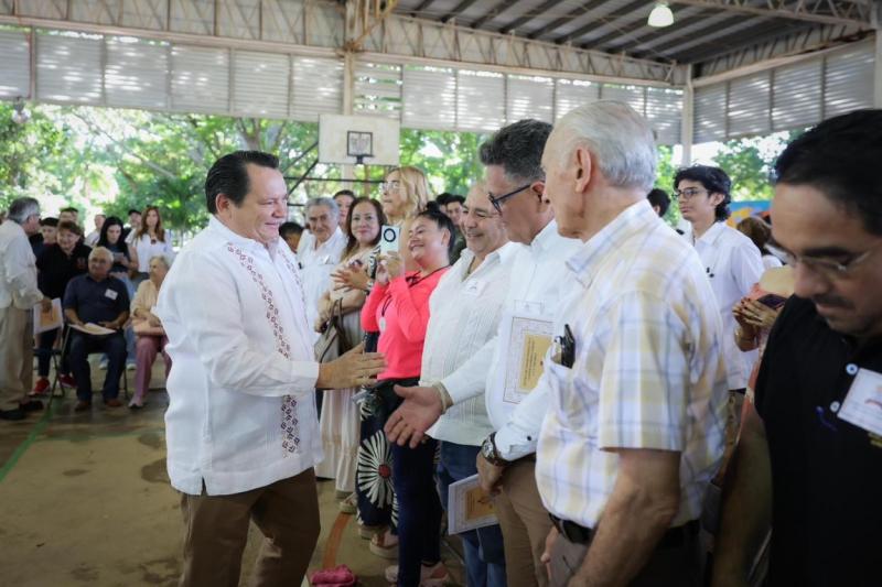 Estos apoyos complementan los que otorga el Gobierno Federal, para que las y los jóvenes no abandonen sus estudios. El Gobernador invitó a las y los presentes a celebrar con orgullo los 50 años del plantel, en los que se han formado generaciones de yucatecos con valores, conocimiento, disciplina y esperanza, gracias a la enseñanza, ejemplo y amor de las y los maestros que han pasado por esta escuela.