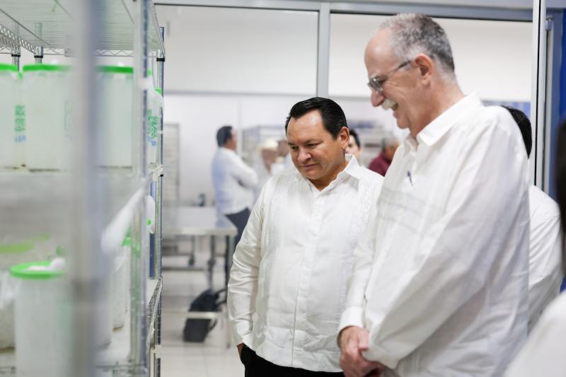 El Gobernador Joaquín Díaz Mena y el titular de la Secretaría de Agricultura y Desarrollo Rural (Sader), Julio Berdegué Sacristán, visitaron el Laboratorio de Control Biológico del Aedes aegypti-Wolbachia, o mosquito bueno, de la Universidad Autónoma de Yucatán (UADY), con el objetivo de evaluar sus capacidades e infraestructura para el establecimiento de una biofábrica modular de producción de moscas estériles que permitan combatir el gusano barrenador del ganado.