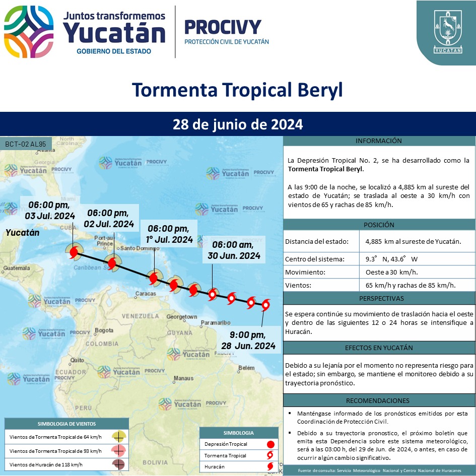 La Depresión Tropical No. 2, se ha desarrollado como la Tormenta Tropical Beryl.