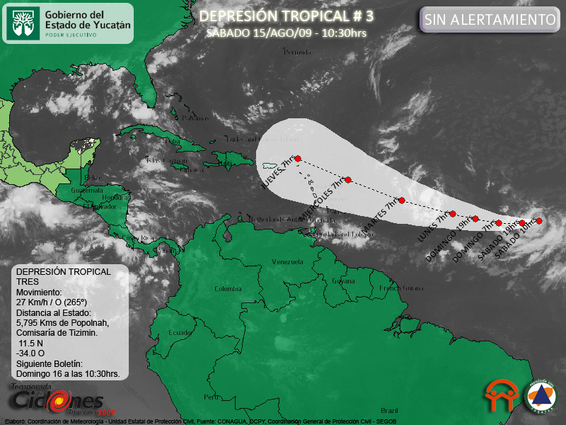 Se espera que la Depresión Tropical # 3 continúe con su desplazamiento general hacia el Oeste durante los próximos días.