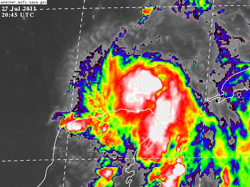 Derivado de la intensa Onda Tropical #12 Se ha formado esta tarde la Tormenta Tropical "DON" en el Sureste del Golfo de México, a 100Km al Noreste de El Cuyo, Comisaría de Tizimin. Imágenes de Satélite indican que la principal actividad asociada se encuentra al Norte de dicho Sistema aún que tambien se observa desarrollo de nublados en el Norte de nuestra entidad, así como en el vecino estado de Quintana Roo.