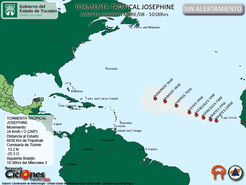 Las primeras horas de hoy Miercoles se forma la Depresión Tropical #10, a las 10hrs se ha intensificado a la Tormenta Tropical Josephin.