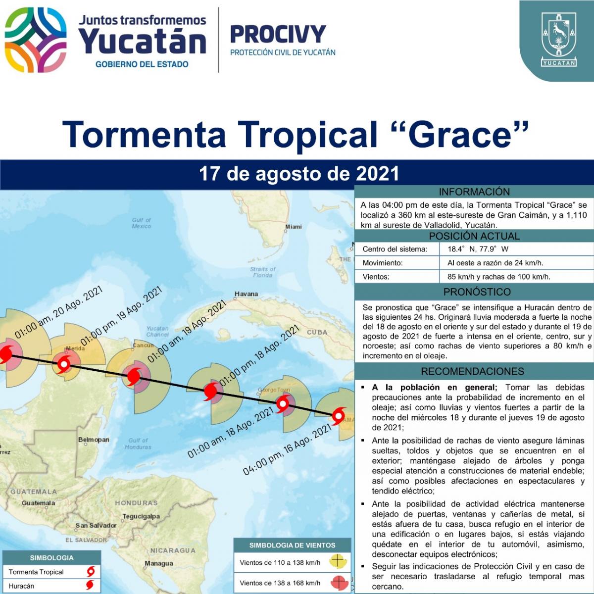La Tormenta Tropical #Grace, se localiza a 360 km al este-sureste de la isla Gran Caimán.