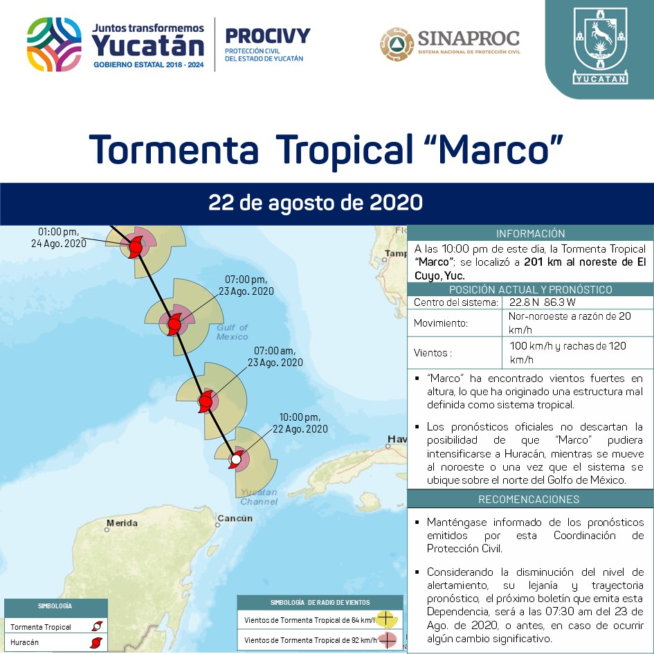 Debido al comportamiento de "Marco", el Sistema Nacional Protección Civil ha retirado el alertamiento para Yucatan.