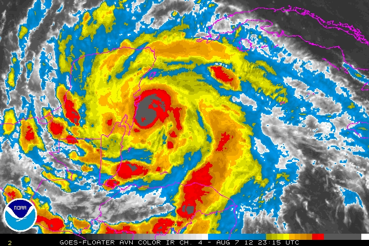 Se espera que el Centro del Huracán Ernesto se desplace sobre las Costa Sur de Quintana Roo durante las próximas horas.