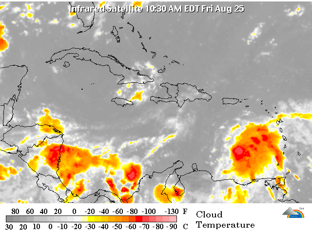 La Depresión Tropical No. 5 se encuentra a 1,220 Km. al Este-Sureste de Kingston, Jamaica, moviéndose hacia el Oeste con una velocidad de traslación de 24 Km/h, vientos máximos sostenidos de 55 Km/h y rachas de hasta 75 Km/h.