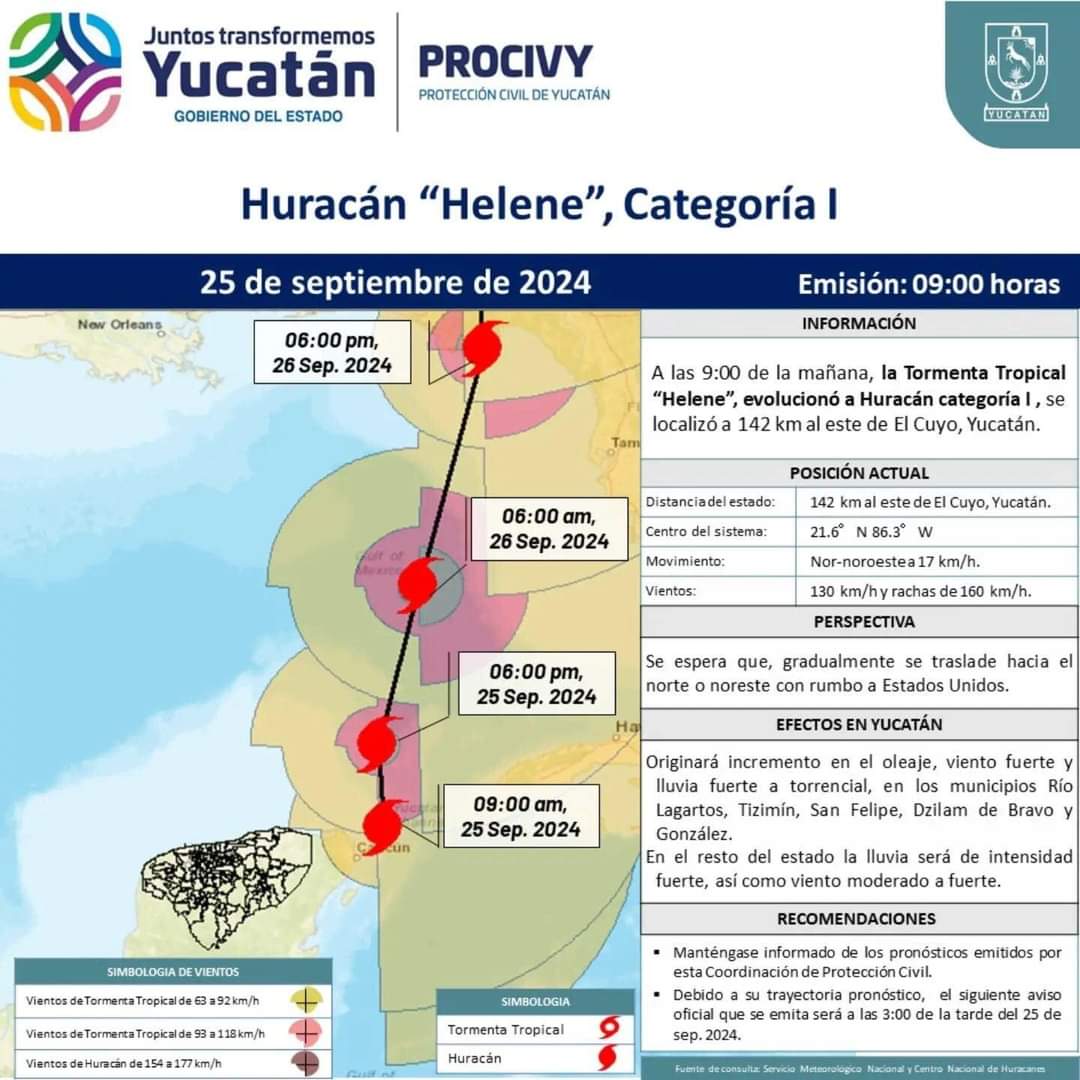 La Tormenta Tropical Helene evolucionó a Huracán categoría 1.