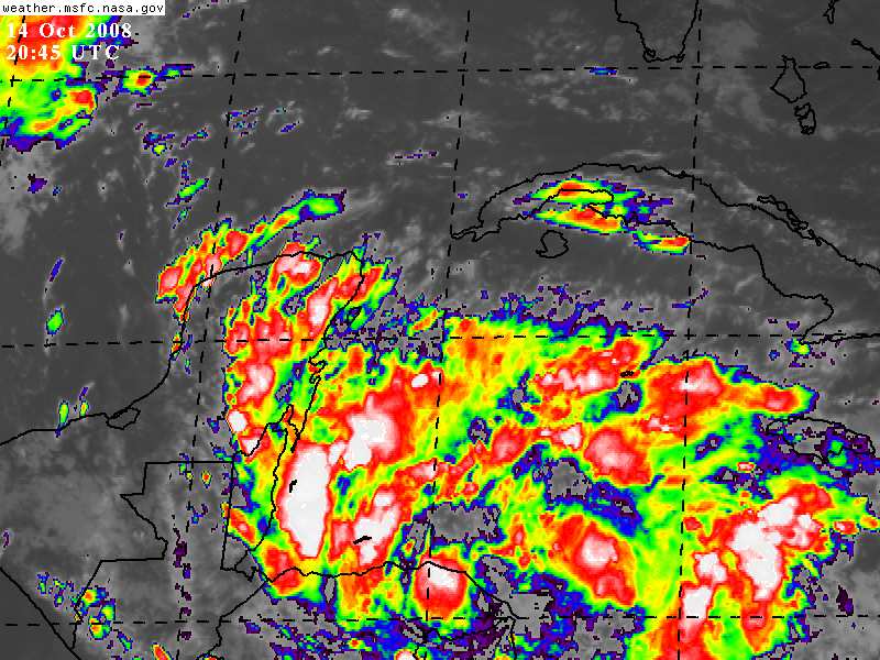 La Depresión Tropical #16 se ha desplazado hacia el Noroeste durante las últimas horas, su centro se estima a 745Kms de Peto, Yucatán y a 585Kms de Chetumal, Quintana Roo.