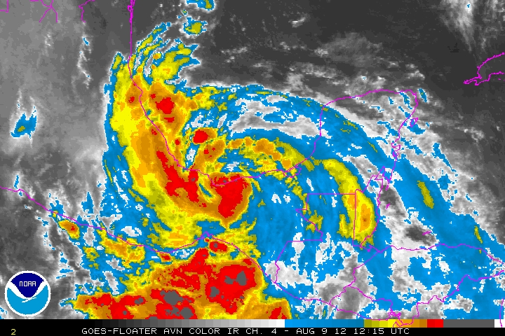 La Tormenta Tropical Ernesto próxima a desplazarse nuevamente sobre tierra en el Estado de Veracruz, cerca de Coatzacoalcos.