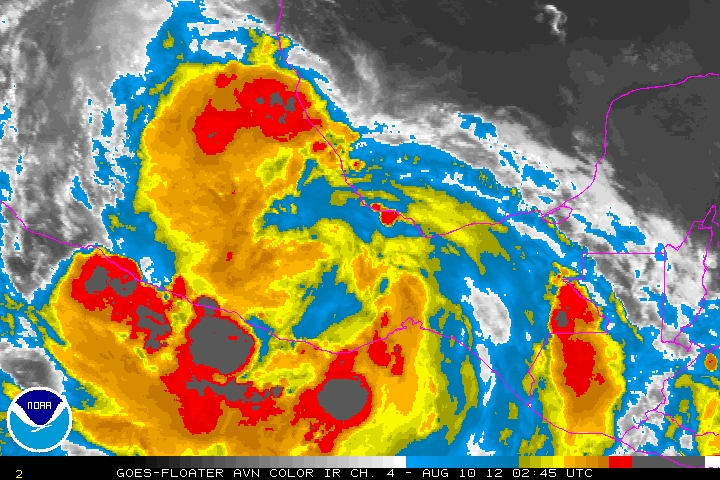 La Tormenta Tropical Ernesto sobre el Istmo de Tehuantepec a 730Kms de Celestún, Yucatán.