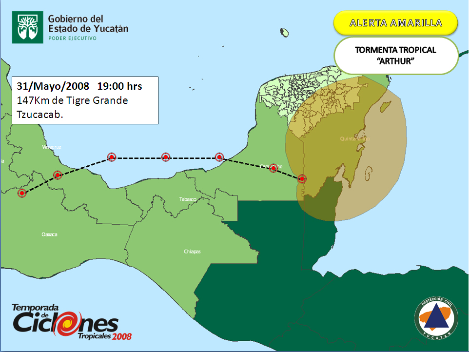 La Tormenta Tropical "ARTHUR" Continúa afectando a la Península de Yucatán, Belice y demás paises centroamericanos.