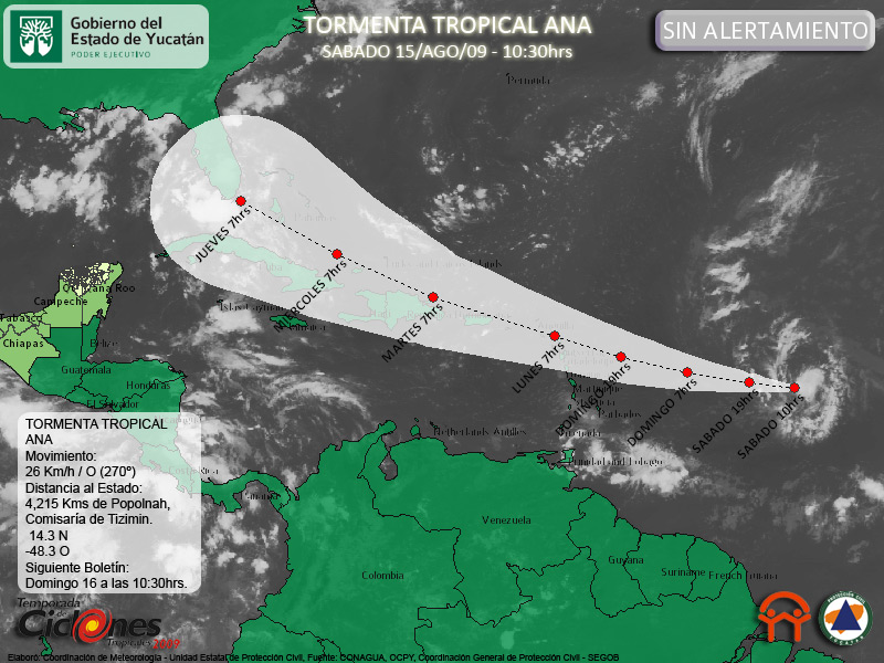 Se espera que Ana continúe con su desplazamiento hacia el Oeste, con un giro gradual hacia el Oeste - Noroeste durante los próximos días
