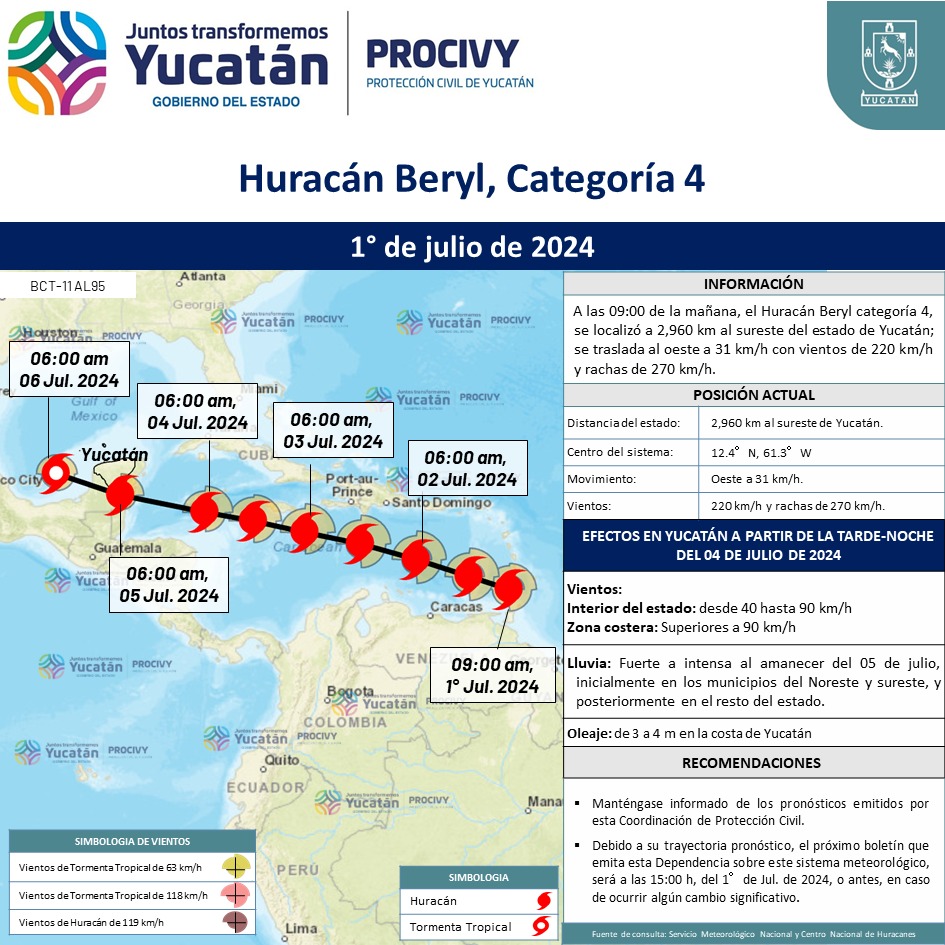 De continuar con su trayectoria pronóstico, se esperan los siguientes efectos en el estado de Yucatán.
