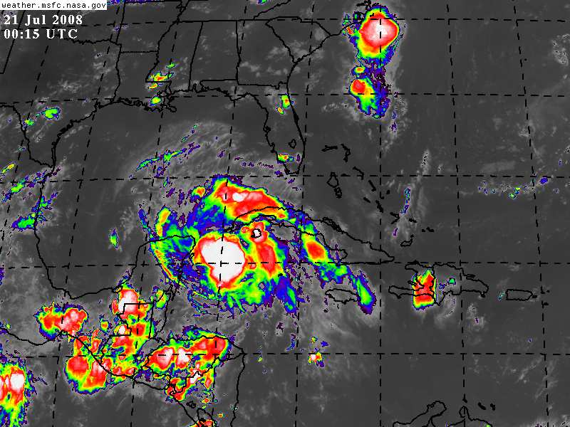 Distancia del centro de la tormenta tropical al Estado de Yucatán: 480 Kms. de la Ciudad de Valladolid, Yucatán