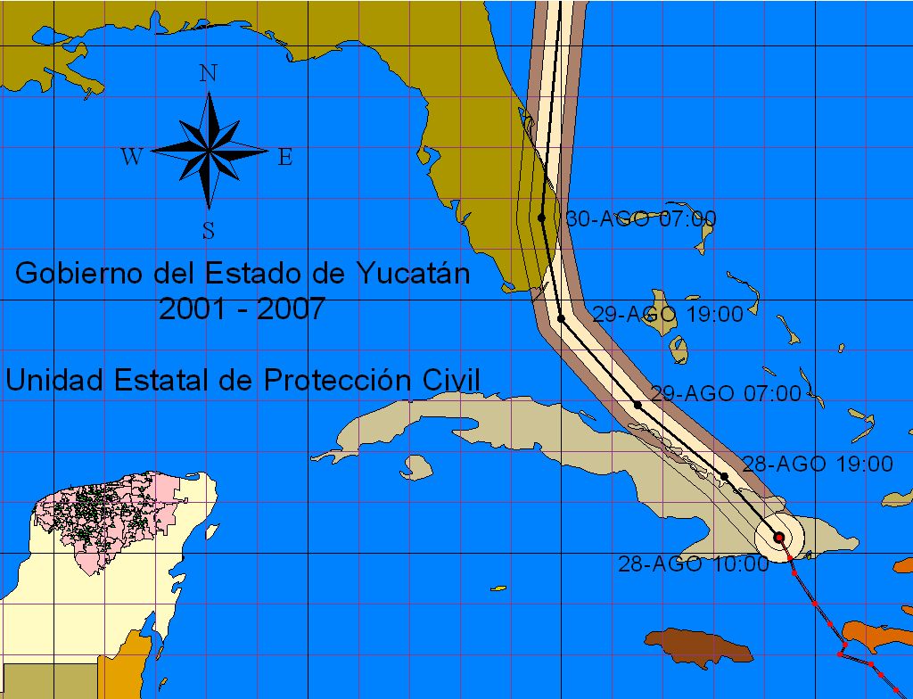 Distancia de los vientos de Tormenta Tropical al Estado: 1,181 Kms. de San Arturo, Tizimín