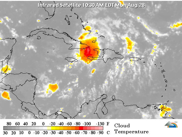 La Tormenta Tropical "Ernesto" se encuentra a 55 Km. al Oeste-Noroeste de Guantánamo, Cuba, moviéndose hacia el Noroeste con una velocidad de traslación de 17 Km/h, vientos máximos sostenidos de 65 Km/h y rachas de hasta 85 Km/h.