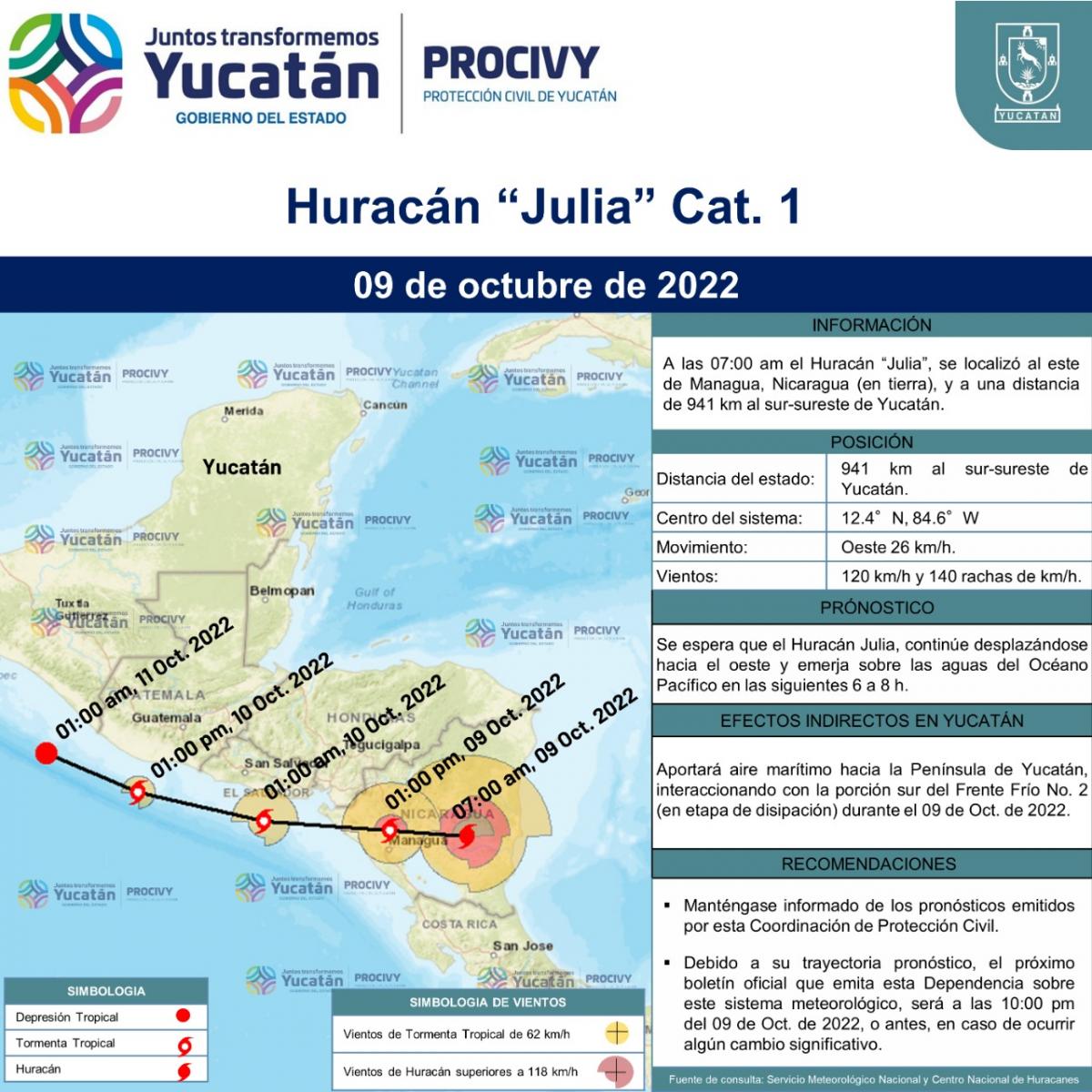 El Huracán "Julia", se localiza al este de Managua, Nicaragua (ya en tierra).