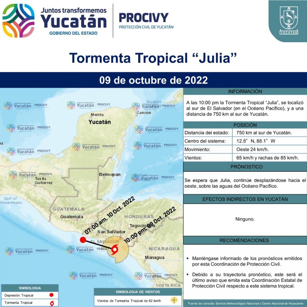 La Tormenta Tropical "Julia", se localizó al sur de El Salvador (en el Océano Pacífico).